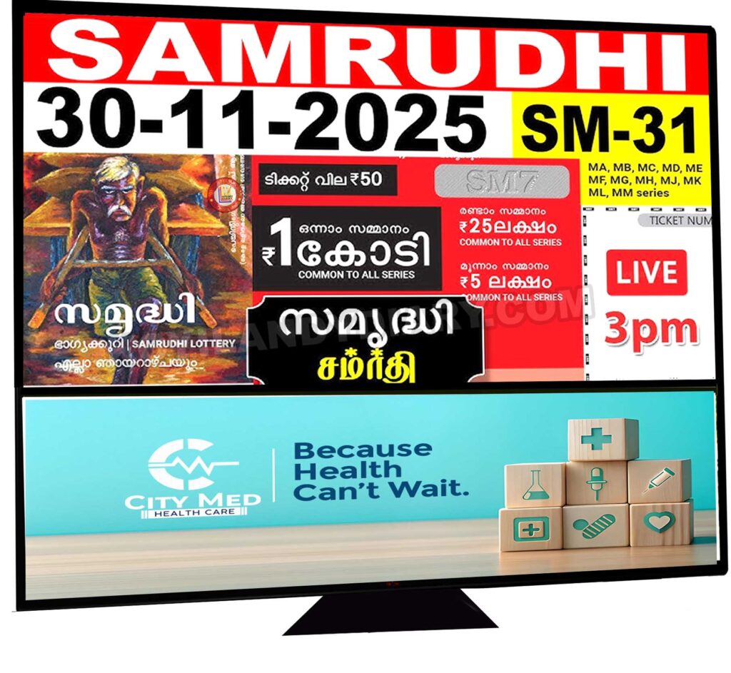 ഒന്നാം സമ്മാനം ഒരു കോടി; സമൃദ്ധി ലോട്ടറി SM 31 നറുക്കെടുപ്പ് ഇന്ന്