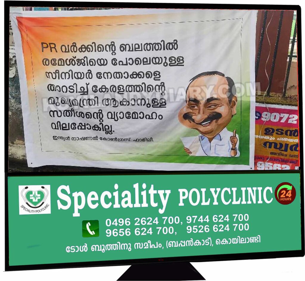 ഇതോടെ കോൺഗ്രസിലെ മുഖ്യമന്ത്രി പോര് മുറുകുകയാണ്. കണ്ണൂരിനും മലപ്പുറത്തിനും പിന്നാലെ വി ഡി സതീശനുവേണ്ടി ആലുവയിലും ഫ്ലക്സ് ബോർഡ് ഉയർന്നത് ഇക്കഴിഞ്ഞ ദിവസമായിരുന്നു. തെരഞ്ഞെടുപ്പ് ഫലം വരുന്നതിന് മുന്നേ കോൺഗ്രസിൽ മുഖ്യമന്ത്രി തർക്കം തുടരുന്നതിനിടെയാണ് ആലുവ തോട്ടുമുഖത്ത് ഫ്ലക്സ് ഉയർന്നത്. ‘യുഡിഎഫ് ജയിക്കും വി ഡി സതീശൻ നയിക്കും’ എന്നാണ് ഫ്ലക്സിൽ കുറിച്ചിരിക്കുന്നത്. ജനങ്ങൾക്കിടയിൽ സ്വാധീനം ചെലുത്താനും പ്രതിഛായ വർദ്ധിപ്പിക്കാനുമുള്ള ശ്രമങ്ങൾ ഓരോ നേതാക്കളും നടത്തുകയാണ്.