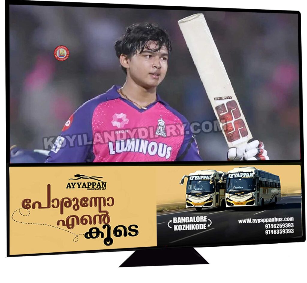 ബുമ്രയ്ക്കേറ്റ അടിയിൽ പതറിപ്പോയ മുംബൈ നിര ഒടുവിൽ രാജസ്ഥാനോട് 27 റൺസിന്റെ തോൽവി ഏറ്റുവാങ്ങി. ഒരു ഫോറും അഞ്ചു സിക്സറുകളും അടക്കം 14 പന്തിൽ 39 റൺസ് അടിച്ചെടുത്ത വൈഭവ് ബുമ്രയും ബോൾട്ടും അടങ്ങുന്ന പേരുകേട്ട ബൗളിംഗ് നിറയെ കശക്കിവിട്ടു. പതിനഞ്ചുകാരനെ എത്രയും വേഗം ഇന്ത്യൻ ടീമിൽ എത്തിക്കണമെന്ന് മുറവിളി സമൂഹമാധ്യമങ്ങളിൽ ഉൾപ്പടെ ഉയരുകയാണ്. മുൻപ് അണ്ടർ 19 കിരീടം നേടിയ വൈഭവിന്റെ സീനിയർ ടീമിലേക്കുള്ള പ്രവേശനം വിദൂരമല്ല എന്നാണ് പൊതുവെ ഉള്ള സൂചന.