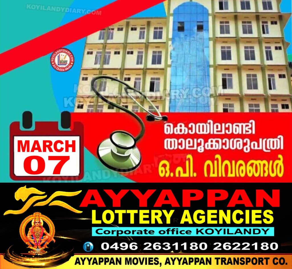 കൊയിലാണ്ടി താലൂക്കാശുപത്രിയിൽ മാ‍ര്‍ച്ച് 07 വെള്ളിയാഴ്ചത്തെ ഒ.പിയില്‍ ലഭിക്കുന്ന സേവനങ്ങളെക്കുറിച്ചുള്ള വിവരങ്ങള്‍..