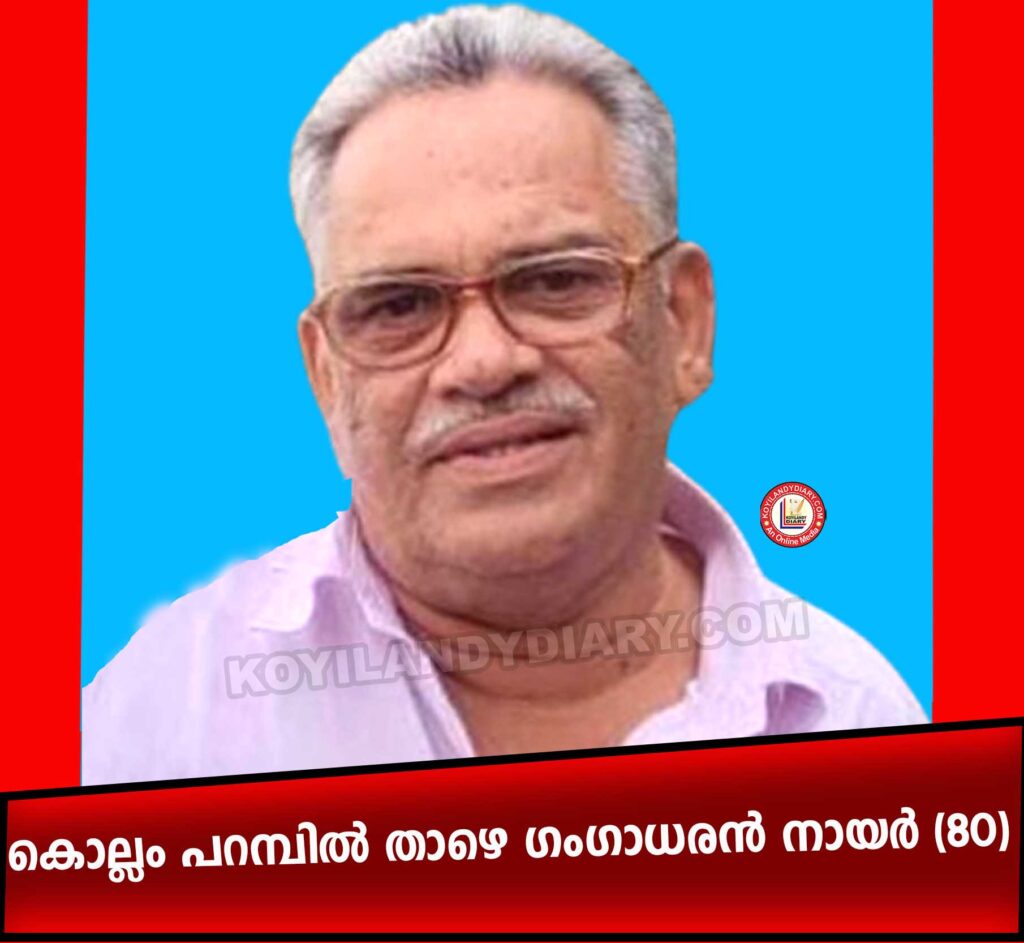 Koyilandy News Obituary കൊല്ലം പറമ്പിൽ താഴെ ഗംഗാധരൻ നായർ (80) 12 months ago koyilandydiary കൊയിലാണ്ടി: കൊല്ലം പറമ്പിൽ താഴെ ഗംഗാധരൻ നായർ (80) നിര്യാതനായി. (റിട്ട. ടെലഫോൺ). ഭാര്യ: വസന്ത. മക്കൾ: പ്രശാന്ത് കുമാർ (അധ്യാപകൻ ഗവ: മോഡൽ Hടട വെള്ളമുണ്ട), പരേതനായ പ്രമോദ്. മരുമക്കൾ: പ്രജിന (M DIT കോളേജ്, ഉള്ള്യേരി). സംസ്കാരം വൈകീട്ട് 5 മണിക്ക്. Share news Post navigation Previous കൊയിലാണ്ടി ഉപജില്ല ശാസ്ത്രോത്സവം17 ന് ആരംഭിക്കുംNext പന്തലായനി വടക്കയിൽ സന്തോഷ് കുമാരി (73)