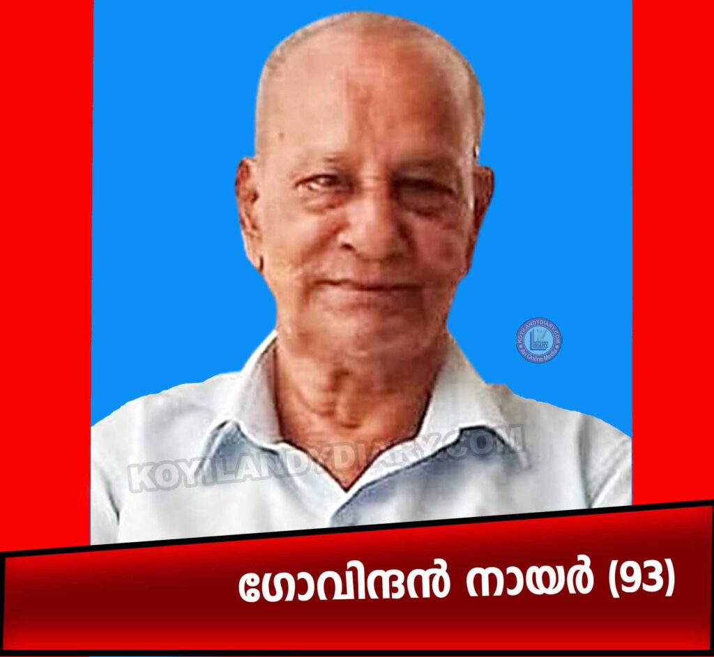 ചേമഞ്ചേരി കൊളക്കാട് എടവലത്ത് ഗോവിന്ദൻ നായർ (93) നിര്യാതനായി