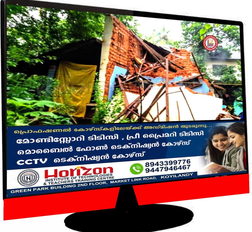 എടച്ചേരി ആലശ്ശേരി പത്താം വാർഡിലെ മീത്തലെ ക്കണ്ടിയിൽ ബാബുവിന്റെ വീടിന്റെ മേൽക്കൂരയിലെ ഇരുന്നൂറോളം ഓടുകൾ ശക്തമായ ചുഴലിക്കാറ്റിൽ പാറി പോയി. ശക്തമായ മഴയിൽ ചുമരും കഴുക്കോലും നനഞ്ഞ് വീട് അപകടാവസ്ഥയിലായി. മീത്തലെക്കണ്ടി ദേവദാസന്റെ വീടിന്റെ മേൽക്കുരയിലും മരം വീണ് നാശമുണ്ടായി.