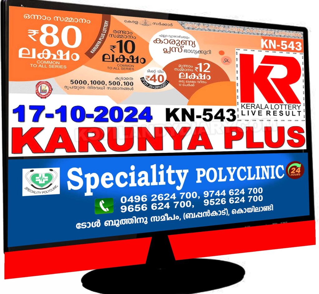 കാരുണ്യ പ്ലസ് KN 543 ലോട്ടറി നറുക്കെടുപ്പ് ഇന്ന്