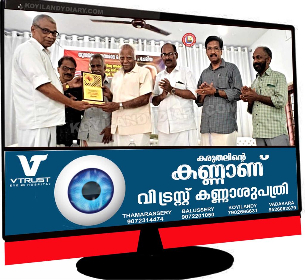 കേരള സാഹിത്യ അക്കാദമി വിശിഷ്ടാംഗത്വം ലഭിച്ച എം ആർ രാഘവവാരിയരെ യുവജന വായനശാല ആദരിച്ചു.