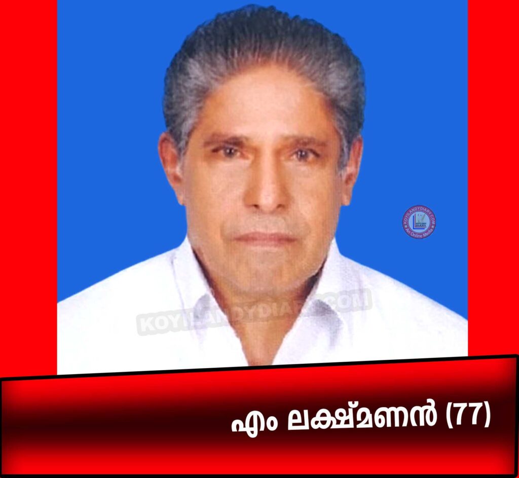 Koyilandy News Obituary കൊയിലാണ്ടി മനയടത്ത് പറമ്പ്, മേലേപ്പുറത്ത് എം ലക്ഷ്മണൻ (77) നിര്യാതനായി 2 hours ago koyilandydiary കൊയിലാണ്ടി: മനയടത്ത് പറമ്പ്, മേലേപ്പുറത്ത് എം ലക്ഷ്മണൻ (77) നിര്യാതനായി. ഭാര്യ: തങ്കം. മക്കൾ: അഭിലാഷ്, തുഷാര, അജിത്ത്, മരുമക്കൾ: വിജീഷ്, ശ്രുതി. Share news Post navigation Previous കൊയിലാണ്ടി സ്പെഷ്യാലിറ്റി പോളിക്ലിനിക്കിലെ ചൊവ്വാഴ്ചത്തെ ഒ.പി വിവരങ്ങൾ
