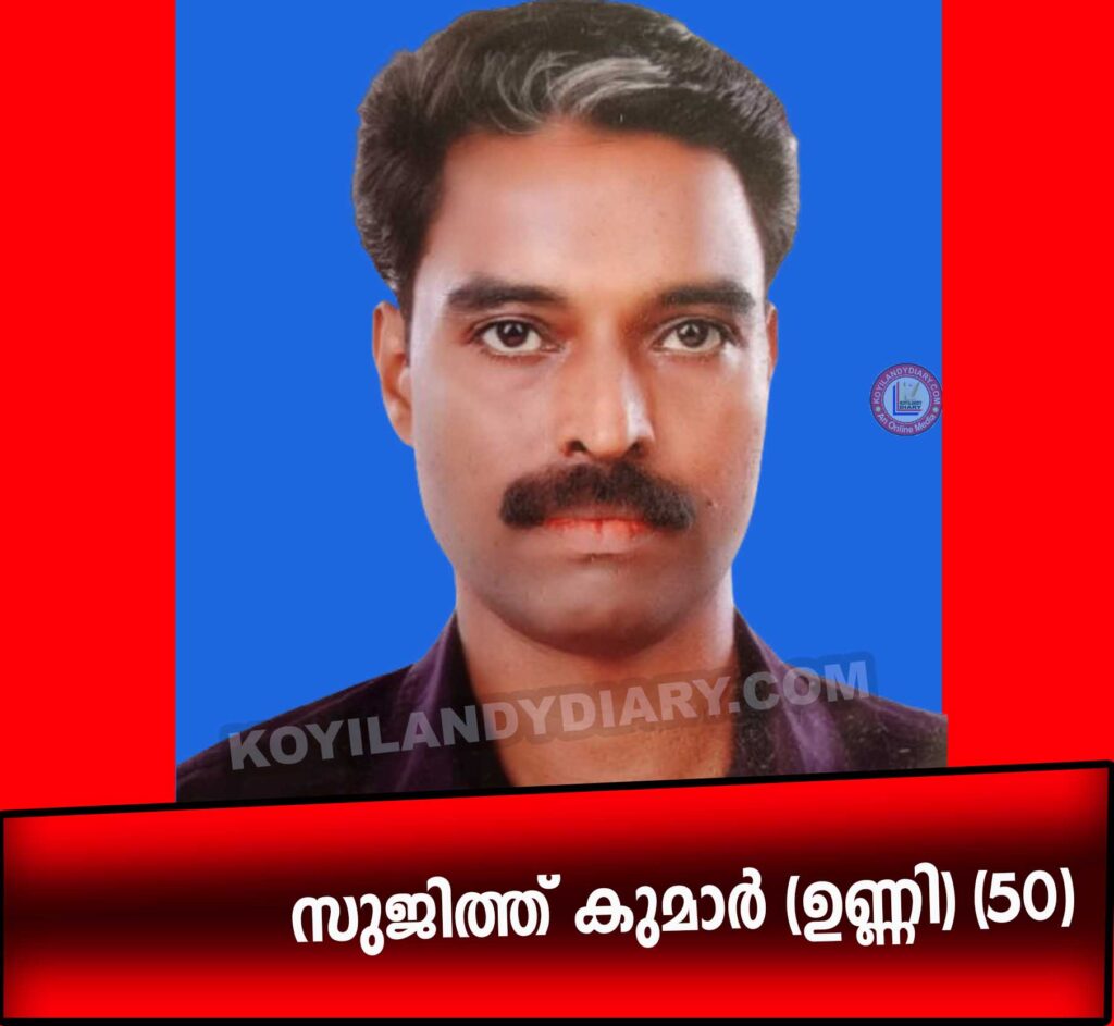 കൊയിലാണ്ടി: ചേരിക്കുന്നുമ്മൽ ‘രാഗസുധ’യിൽ പരേതനായ ഗോപാലൻ്റെ മകൻ സുജിത്ത് കുമാർ (ഉണ്ണി) (50) നിര്യാതനായി. സംസ്ക്കാരം: ഉച്ചക്ക് 2.30ന് മുചുകുന്ന് വീട്ടിൽ നടക്കും. അമ്മ: രാധ. ഭാര്യ: മിനി. മക്കൾ: സുനീറ്റ, അലൻ റിച്ച്. സഹോദരങ്ങൾ: പരേതരായ സുനിൽ കുമാർ, അനിൽ കുമാർ.