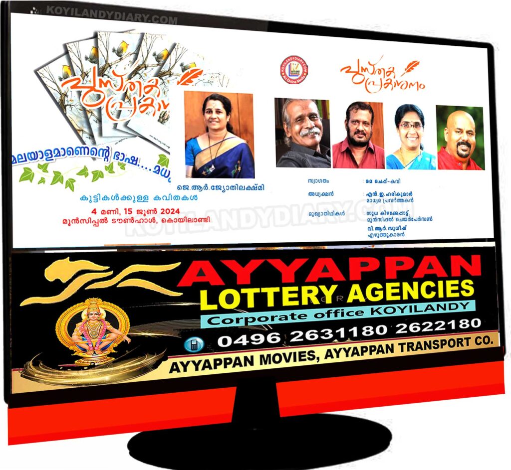 കൊയിലാണ്ടി: ജെ.ആർ. ജ്യോതിലക്ഷ്മിയുടെ മലയാളമാണെൻ്റെ ഭാഷ, മധുര മനോഹര ഭാഷ (കുട്ടികൾക്കുള്ള കവിതകൾ) എന്ന പുസ്തകത്തിൻ്റെ പ്രകാശനം ജൂൺ 15 കൊയിലാണ്ടി മുൻസിപ്പൽ ഇ.എം.എസ് ടൗൺ ഹാളിൽ നടക്കും. വൈകുന്നേരം 4 മണിയ്ക്ക് കൽപറ്റ നാരായണൻ മാസ്റ്റർ പ്രകാശനം നിർവ്വഹിക്കും. മുൻസിപ്പൽ ചെയർപേർസൺ സുധ കിഴക്കേപ്പാട്ട്, എഴുത്തുകാരൻ വി.ആർ. സുധീഷ് എന്നിവർ പങ്കെടുക്കും.