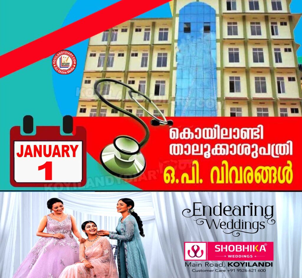 കൊയിലാണ്ടി താലൂക്കാശുപത്രിയിൽ ജനുവരി 1 തിങ്കളാഴ്ചത്തെ ഒ.പി. യിൽ ലഭിക്കുന്ന സേവനങ്ങളെക്കുറിച്ചുള്ള വിവരങ്ങൾ. സി.ടി. സ്കാൻ പ്രവർത്തനസജ്ജം.