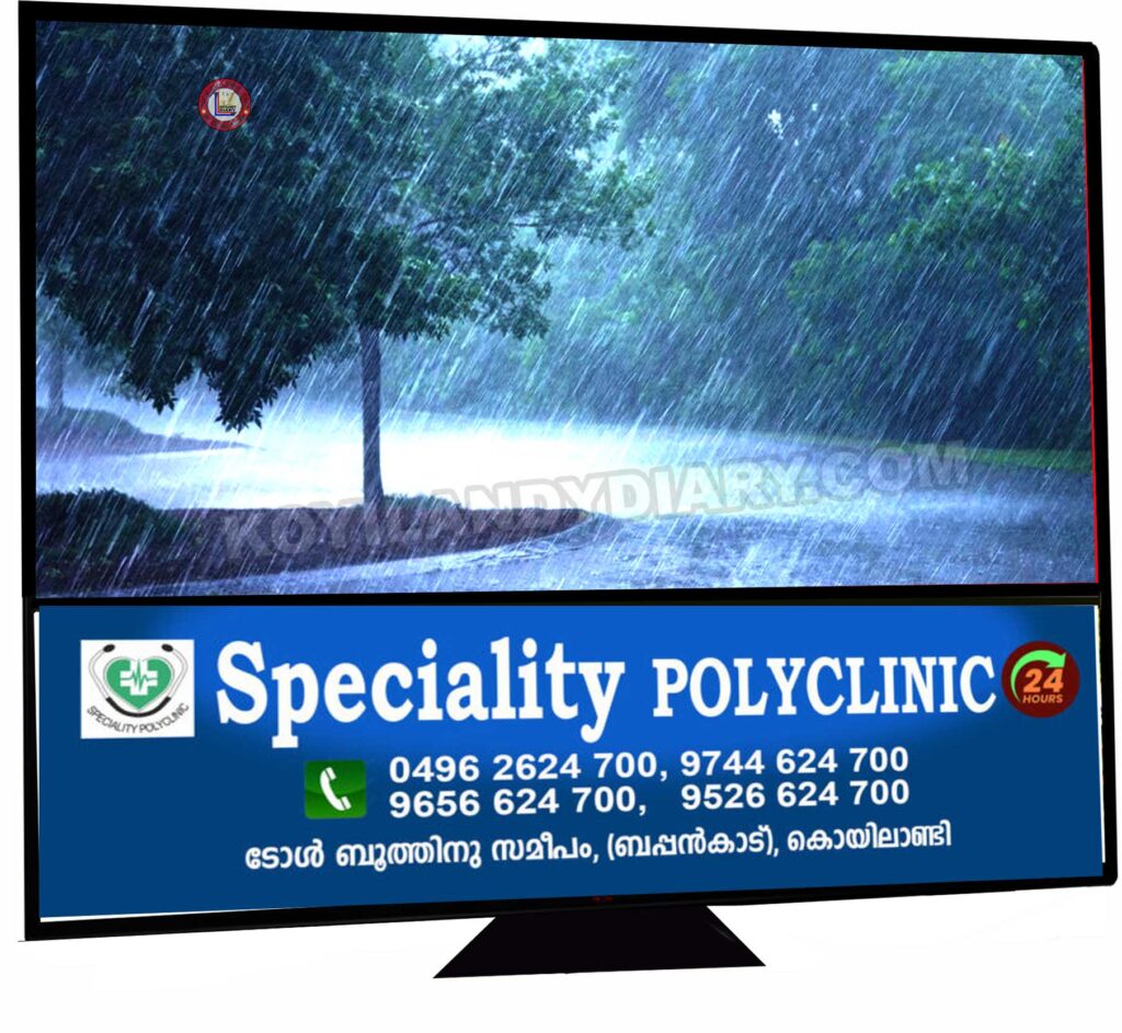 ഇന്ന് എറണാകുളം, തൃശ്ശൂർ, പാലക്കാട്, മലപ്പുറം, കോഴിക്കോട്, വയനാട്, കണ്ണൂർ, കാസർഗോഡ് ജില്ലയിലും നാളെ തൃശ്ശൂർ, പാലക്കാട്, മലപ്പുറം, കോഴിക്കോട്, വയനാട്, കണ്ണൂർ, കാസർഗോഡ് ജില്ലയിലും ജൂലൈ 14 നും 15 നും എറണാകുളം തൃശ്ശൂർ, മലപ്പുറം, കോഴിക്കോട്, വയനാട്, കണ്ണൂർ, കാസർഗോഡ് ജില്ലകളിലും യെല്ലോ അലേർട്ട് പ്രഖ്യാപിച്ചിട്ടുണ്ട്