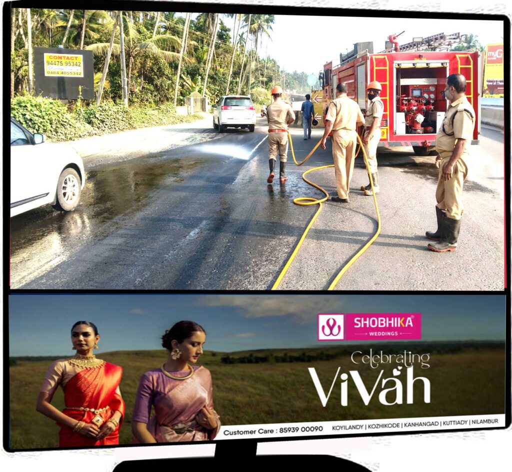 വാഹനത്തിൽ നിന്നും റോഡിലേക്ക് ഒഴുകിയ ഓയിൽ നീക്കം ചെയ്തു