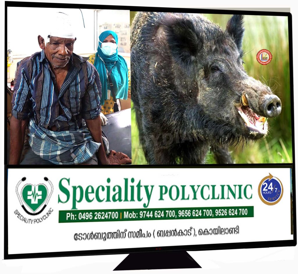 ചേമഞ്ചേരിയിൽ കാട്ടുപന്നിയുടെ അക്രമത്തിൽ ഒരാൾക്ക് പരിക്ക്. ബൈക്ക് തകർത്തു