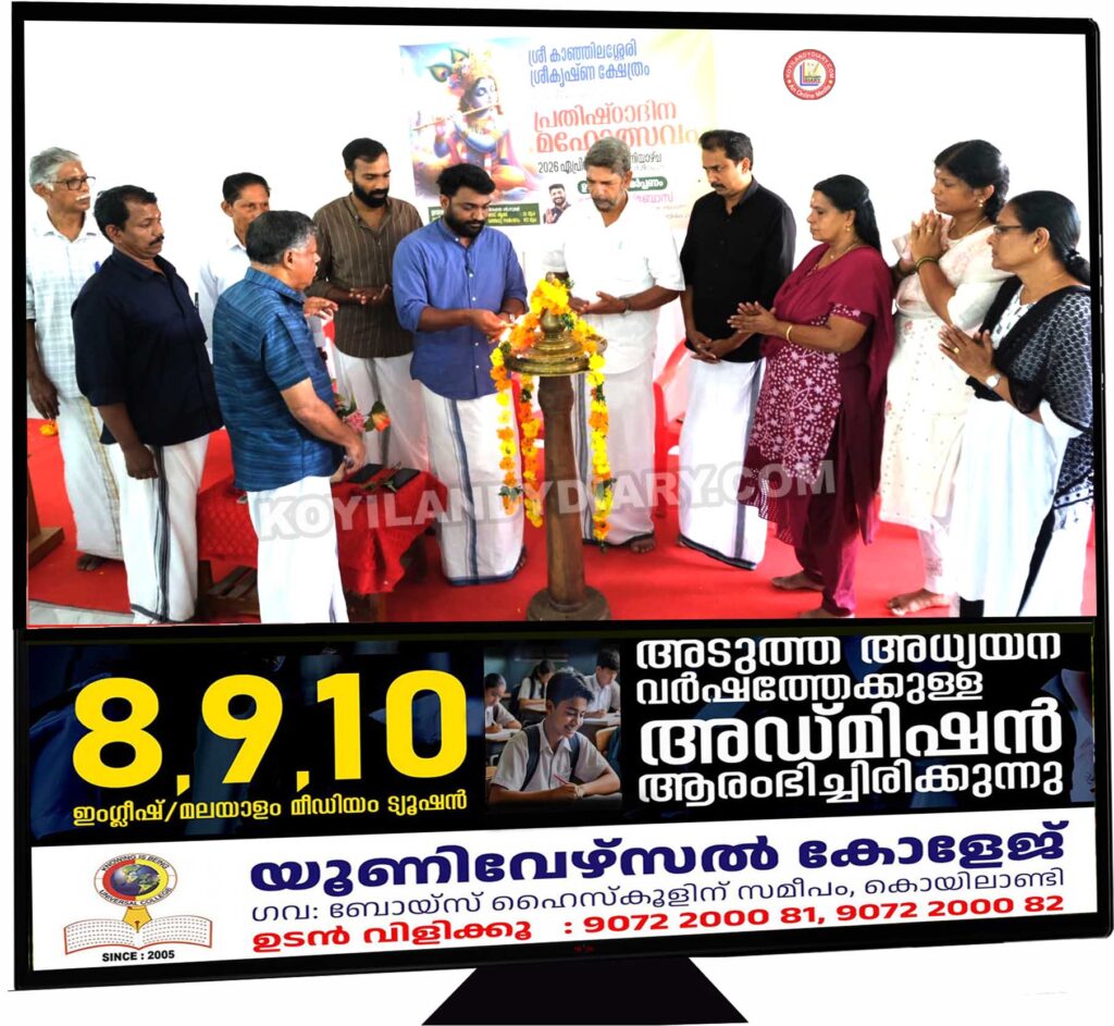 കൊയിലാണ്ടി: ചേമഞ്ചേരി കാഞ്ഞിലശ്ശേരി ശ്രീകൃഷ്ണ ക്ഷേത്രത്തിൽ നടന്ന പ്രതിഷ്ഠാദിന മഹോത്സവ ദിനത്തിൽ പുതുതായി നിർമ്മിച്ച ഊട്ടുപുര “കൃഷ്ണകൃപ” നാടിന് സമർപ്പിച്ചു. ചേമഞ്ചേരി ഗ്രാമപഞ്ചായത്ത് അധ്യക്ഷൻ അജയ് ബോസ് സമർപ്പണം നിർവ്വഹിച്ചു. ഉദ്ഘാടന പരിപാടിയിൽ മാനേജിങ് ട്രസ്റ്റി ഹരിഹരൻ പൂക്കാട് അധ്യക്ഷത വഹിച്ചു.