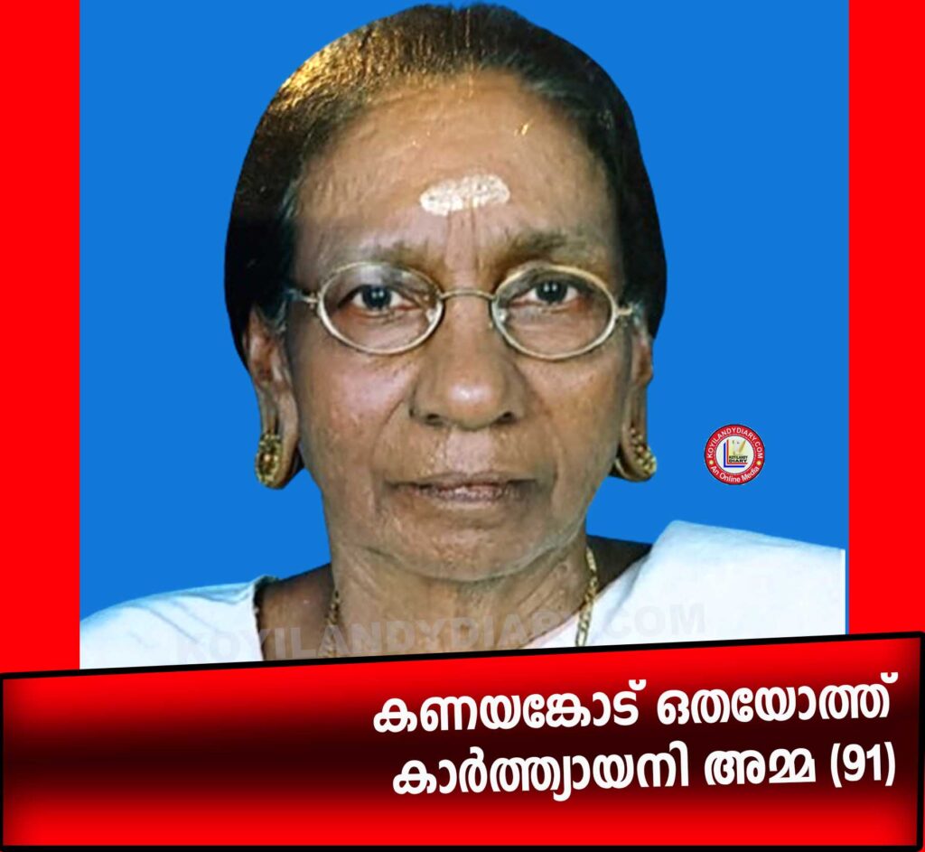 കൊയിലാണ്ടി: കണയങ്കോട്, ഒതയോത്ത് കാർത്ത്യായനി അമ്മ (91) നിര്യാതയായി. ഭർത്താവ്: പരേതനായ കൃഷ്ണൻ നായർ (പിഡബ്ല്യൂഡി). മക്കൾ: മാധവൻ ഒതയോത്ത് (റിട്ട. പി.ഡബ്യു.ഡി., ബിജെപി കൊയിലാണ്ടി മണ്ഡലം ട്രഷറർ), പുഷ്പ, പ്രസന്ന, പ്രമീള, മോഹൻ കുമാർ. മരുമക്കൾ: വാസു നായർ ഉള്ള്യേരി, ഗോവിന്ദൻ കുട്ടി നായർ (മൊടക്കല്ലൂർ, (റിട്ട. എഡ്യുക്കേഷൻ ഡിപ്പാർട്ട്മെന്റ്), ജിനചന്ദ്രൻ (റിട്ട. ആർമി), ഷാജിമോൾ, പ്രിയ.