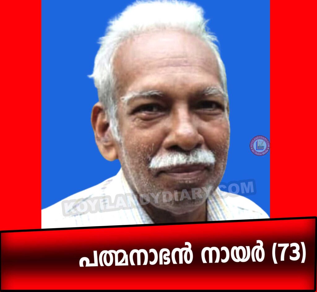 ചേമഞ്ചേരി: കാഞ്ഞിലശ്ശേരി ഇളവനക്കണ്ടി പത്മനാഭൻ നായർ (73) നിര്യാതനായി. ഭാര്യ: സതി, മക്കൾ: നിഷിത, ശ്രീവിദ്യ. മരുമക്കൾ: ബാബു, ശ്യാം പ്രസാദ് (നടുവത്തൂർ), ഗോപേഷ്, ഗുരുദേവ്. സഹോദരങ്ങൾ: പത്മാവതി അമ്മ, ശശിധരൻ നായർ (മുംബയ്). ശിവദാസൻ: ശവസംസ്ക്കാരം: തിങ്കളാഴ്ച വൈകുന്നേരം 5 മണിക്ക് വീട്ടുവളപ്പിൽ.
