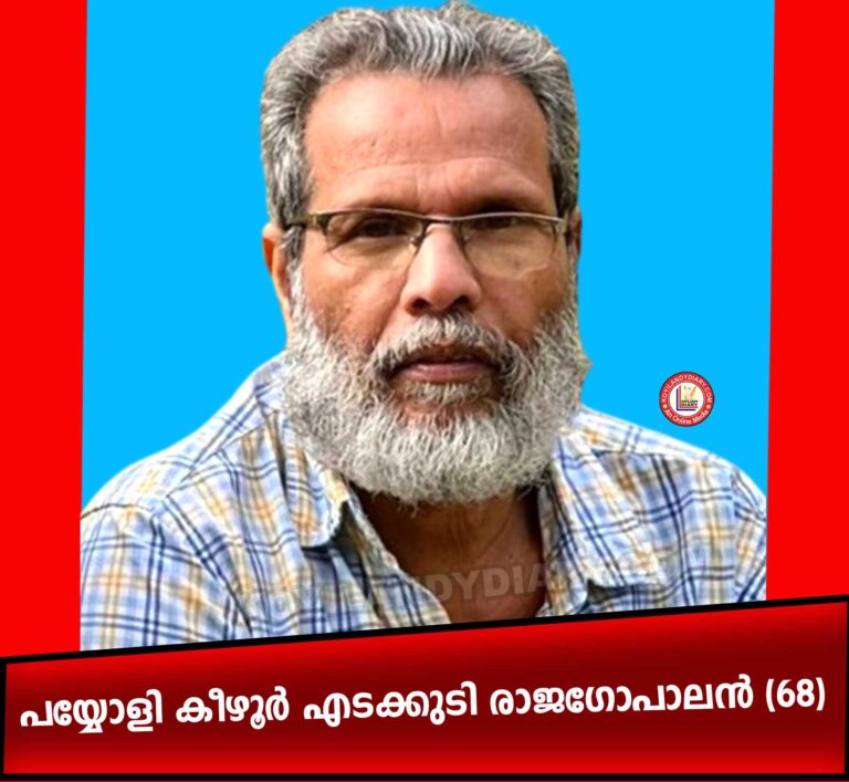 പയ്യോളി കീഴൂർ ശിവക്ഷേത്രത്തിന് സമീപം എടക്കുടി രാജഗോപാലൻ (68) നിര്യാതനായി. ഭാര്യ: പ്രമീള (മുൻ കൗൺസിലർ പയ്യോളി മുൻസിപ്പാലിറ്റി, പന്തലായനി സ്വദേശി). മക്കൾ: രമ്യ, രഞ്ജിത്ത്. (ഇരുവരും...