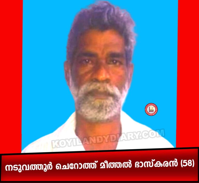 കൊയിലാണ്ടി: നടുവത്തൂർ ചെറോത്ത് മീത്തൽ ഭാസ്കരൻ (58) നിര്യാതനായി. ഭാര്യ: സരള. മക്കൾ: ഷൈനി, ഷൈജ, ഷൈമ. മരുമക്കൾ: രഞ്ജീഷ് പറമ്പത്ത്, അജീഷ് പട്ടാം പുറത്ത്, പ്രബീഷ്...