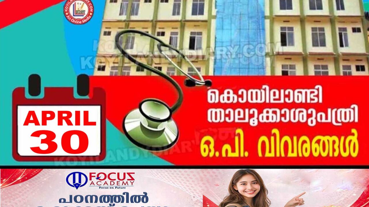 കൊയിലാണ്ടി താലൂക്കാശുപത്രിയിലെ ഇന്നത്തെ (സപ്തംബർ 25 തിങ്കളാഴ്ച) ഒ.പി.യിൽ ലഭിക്കുന്ന സേവനങ്ങളെക്കുറിച്ചുള്ള വിവരങ്ങൾ. സി.ടി. സ്കാൻ പ്രവർത്തനസജ്ജം. താലൂക്കാശുപത്രിയിൽ ഇ-ഹെൽത്ത് പദ്ധതി ആരംഭിച്ചിരിക്കുന്നു. ഇനി മുതൽ OP...