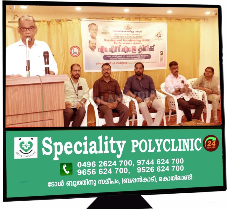 കൊയിലാണ്ടി: വ്യവസായ വകുപ്പ് നടപ്പിലാക്കുന്ന RAMP (Rising and Accelerating MSME Performance) പദ്ധതിയുടെ ഭാഗമായി സംരംഭകരുടെ സംശയങ്ങൾ ദൂരീകരിക്കാനും പ്രശ്നങ്ങൾ പരിഹരിക്കാനുമായി എം.എസ്.എം.ഇ ക്ലിനിക്ക് സംഘടിപ്പിച്ചു....