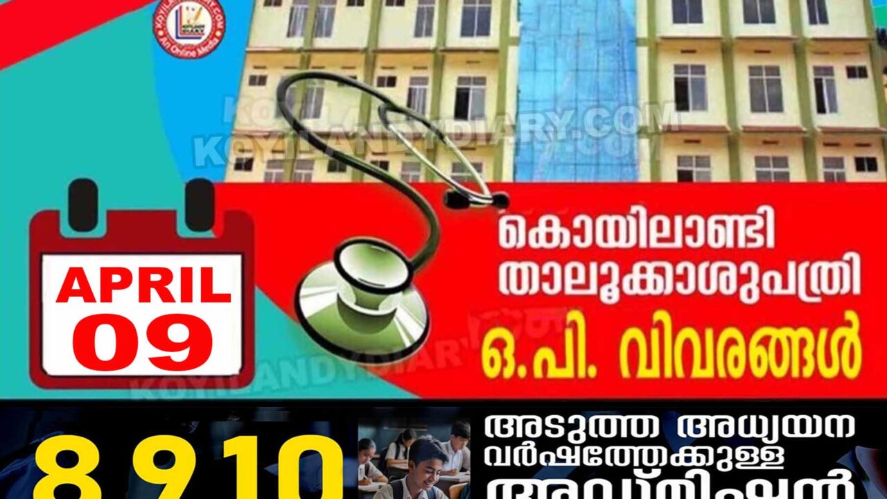 കൊയിലാണ്ടി താലൂക്കാശുപത്രിയിൽ ജൂണ് 10 ചൊവ്വാഴ്ചത്തെ ഒ.പിയില് ലഭിക്കുന്ന സേവനങ്ങളെക്കുറിച്ചുള്ള വിവരങ്ങള്.. താലൂക്കാശുപത്രിയിൽ ഇ-ഹെൽത്ത് പദ്ധതിയുടെ ഭാഗമായി ഇനി മുതൽ OP ടിക്കറ്റ് എടുക്കാൻ വരുന്നവർ ആധാർ കാർഡ്,...