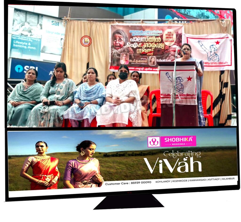 കൊയിലാണ്ടി: അഖിലേന്ത്യ ജനാധിപത്യ മഹിള അസോസിയേഷൻ പയ്യോളി ഏരിയ കമ്മിറ്റിയുടെ നേതൃത്വത്തിൽ പാലസ്തീൻ ഐക്യദാർഡ്യ സദസും സിഗ് നേച്ചർ ക്യാമ്പയിനും നന്തി ടൗണിൽ സംഘടിപ്പിച്ചു. സംസ്ഥാന കമ്മിറ്റി അംഗം പി. ഉഷാദേവി സദസ് ഉദ്ഘാടനം ചെയ്തു. ശ്രുതി അധ്യക്ഷത വഹിച്ചു. ജില്ലാ പ്രസിഡണ്ട് ഡി. ദീപ, പി. കെ. ഷീജ, ഉഷ വളപ്പിൽ എന്നിവർ സംസാരിച്ചു. ഒലീന പ്രതിജ്ഞ ചൊല്ലി. എം.പി. അഖില സ്വഗതവും ശ്രീലത നന്ദിയും പറഞ്ഞു.