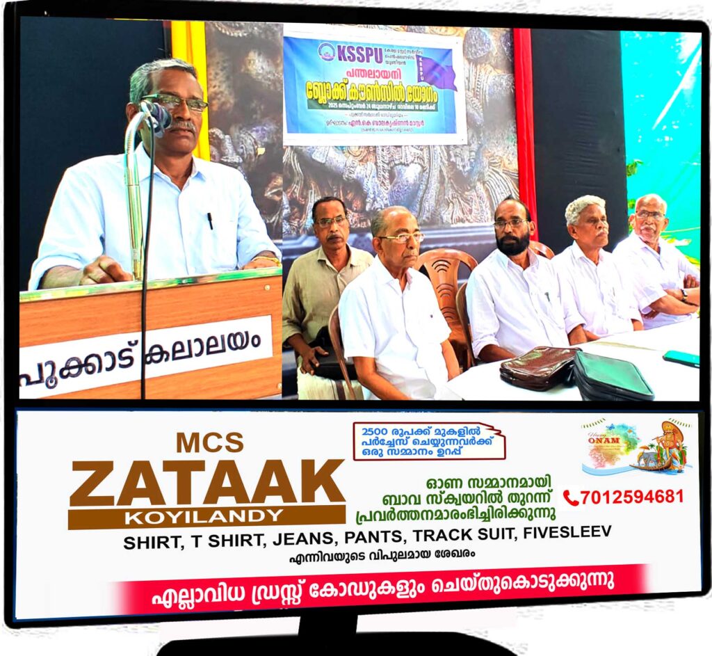2026 ഏപ്രിലിൽ കോഴിക്കോട് നടക്കുന്ന സംസ്ഥാന സമ്മേളനം വിജയിപ്പിക്കുന്നതിനുവേണ്ടിയുളള കൗൺസിൽ യോഗം ജില്ലാ ട്രഷറർ എൻ കെ ബാലകൃഷ്ണൻ മാസ്റ്റർ ഉദ്ഘാടനം ചെയ്തു. പൂക്കാട് സര്ഗവനി ഓഡിറ്റോറിയത്തില് നടന്ന യോഗത്തില് ബ്ലോക്ക് പ്രസിഡൻ്റ് എൻ കെ കെ മാരാർ ചടങ്ങിൽ അധ്യക്ഷനായി. സംസ്ഥാന കമ്മിറ്റി അംഗം എ വേലായുധൻ മുഖ്യഭാഷണം നടത്തി.
