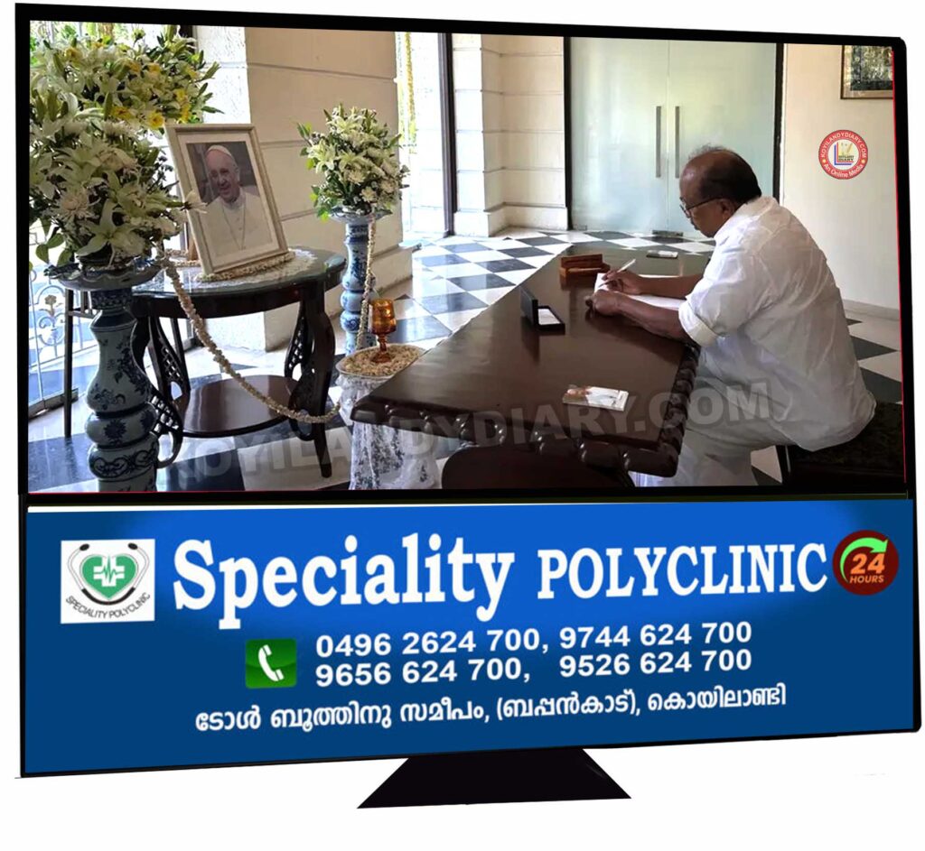 ന്യൂഡൽഹി: ആഗോള ക്രൈസ്തവ സഭയുടെ അധിപൻ ഫ്രാൻസിസ് മാർപാപ്പയുടെ വേർപാടിൽ മുഖ്യമന്ത്രി പിണറായി വിജയൻ, കേരള സർക്കാർ എന്നിവരുടെ അനുശോചനം അറിയിക്കാൻ സംസ്ഥാന സർക്കാരിന്റെ ഡൽഹിയിലെ പ്രത്യേക പ്രതിനിധി പ്രൊഫ. കെ വി തോമസ് വത്തിക്കാൻ കാര്യലയവും കാത്തലിക് ബിഷപ് കോൺഫ്രൻസ് ഓഫ് ഇന്ത്യയുടെ ആസ്ഥാനവും, സേക്രട്ട് ഹാർട്ട് കത്തിഡ്രലും സന്ദർശിച്ച് ആദരവ് അർപ്പിച്ചു. ഔദ്യോഗിക ഡയറിയിൽ അനുശോചന സന്ദേശം രേഖപ്പെടുത്തി. ന്യൂൺഷ്യോയുടെ പ്രതിനിധി മോൺ. ജുവൽ സാവിയോ കെ വി തോമസിനെ സ്വീകരിച്ചു.