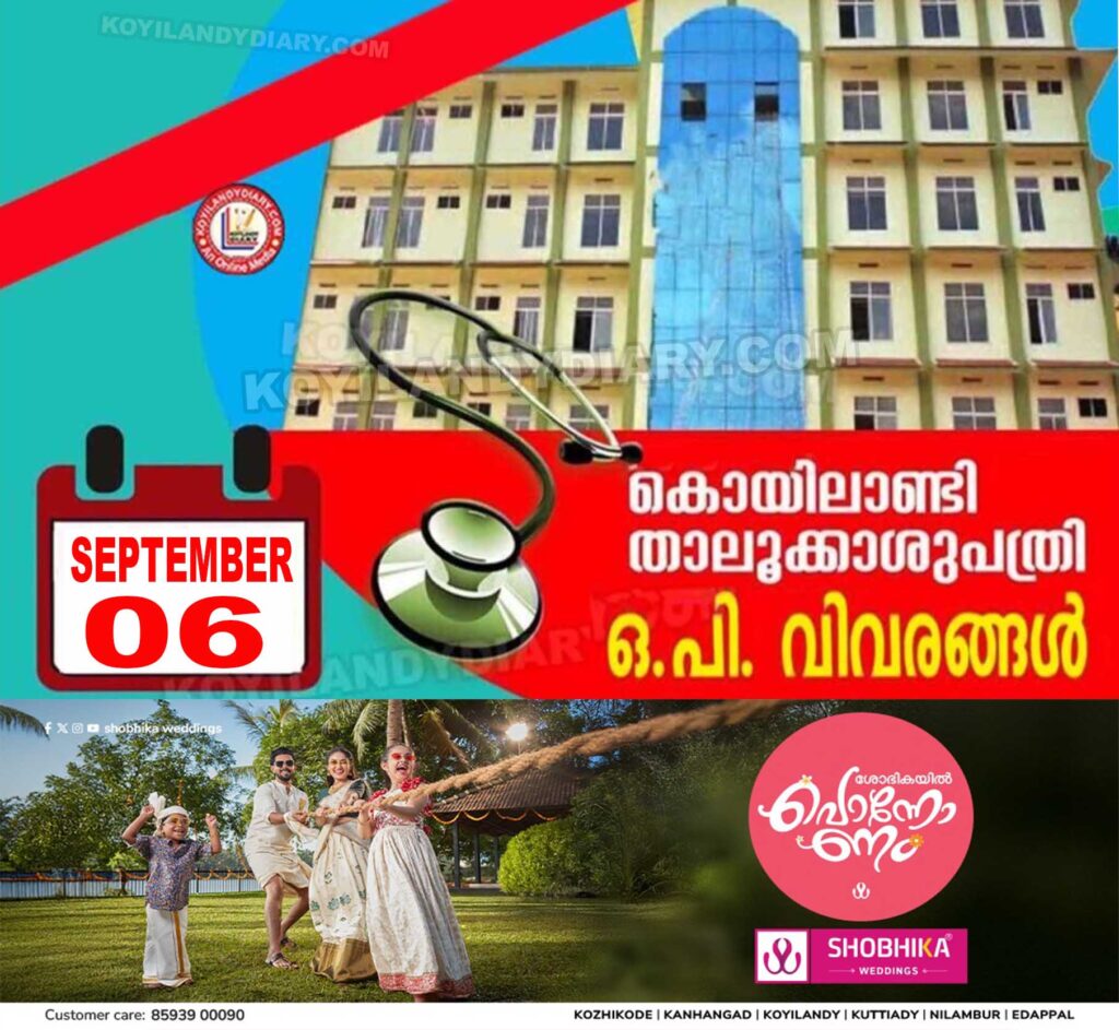 കൊയിലാണ്ടി താലൂക്കാശുപത്രിയിൽ സപ്തംബര് 06 ശനിയാഴ്ചത്തെ ഒ.പിയില് ലഭിക്കുന്ന സേവനങ്ങളെക്കുറിച്ചുള്ള വിവരങ്ങള്..
