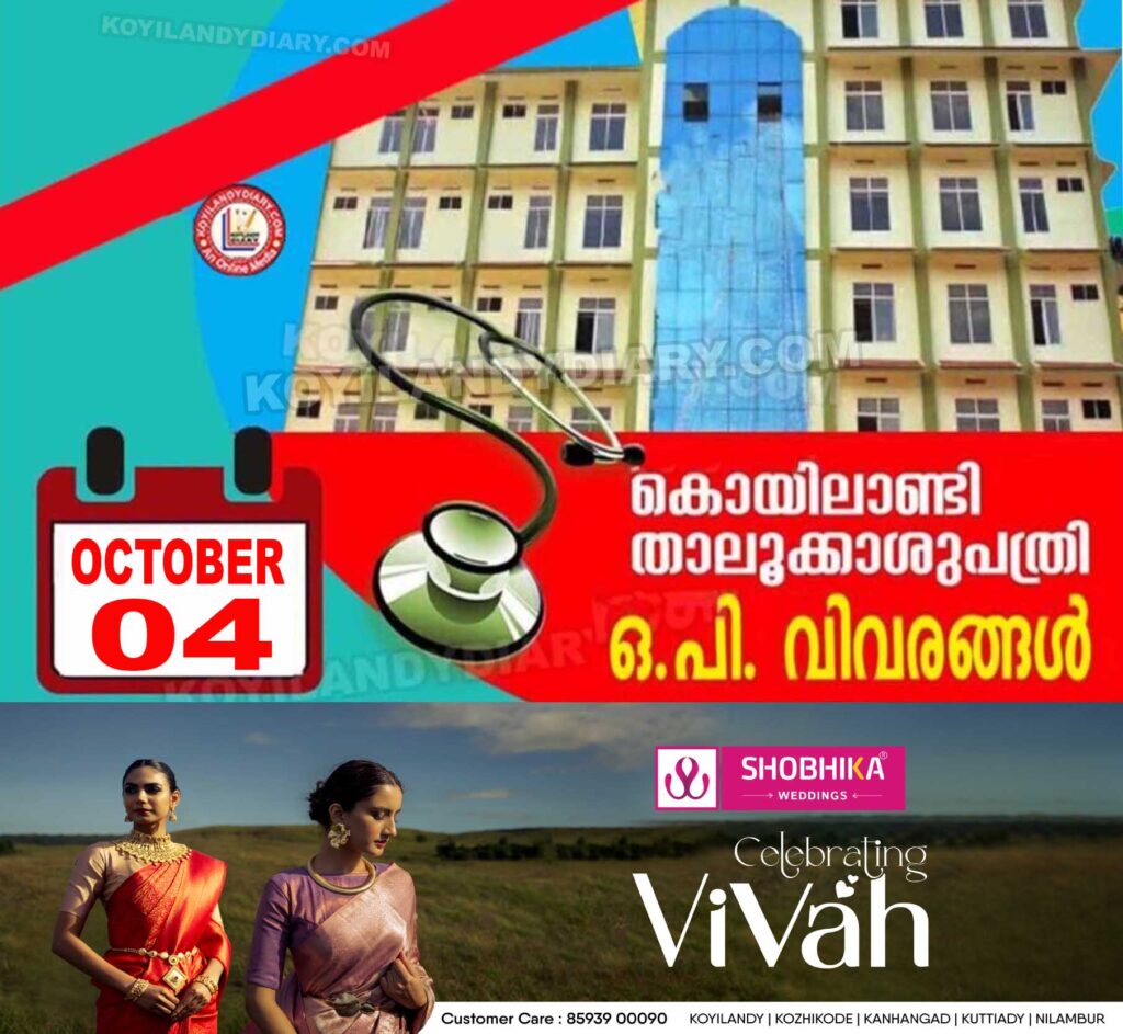 കൊയിലാണ്ടി താലൂക്കാശുപത്രിയിൽ ഒക്ടോബര് 04 ശനിയാഴ്ചത്തെ ഒ.പിയില് ലഭിക്കുന്ന സേവനങ്ങളെക്കുറിച്ചുള്ള വിവരങ്ങള്..
