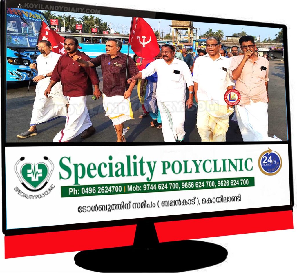 കൊയിലാണ്ടി: കർഷക സംഘടനകളുടെ നേതൃത്വത്തിൽ ഡൽഹിയിൽ നടക്കുന്ന കർഷക പ്രക്ഷോഭത്തിന് ഐക്യദാർഢ്യം പ്രഖ്യാപിച്ച് കൊയിലാണ്ടിയിൽ പ്രകടനം സംഘടിപ്പിച്ചു. കർഷക സംഘം, കർഷക തൊഴിലാളി യൂണിയൻ, സി ഐ ടി യു, നേതൃത്വത്തിൽ കൊയിലാണ്ടിയിൽ നടന്ന പ്രകടനത്തിന് കർഷക സംഘം കേന്ദ്ര കമ്മിറ്റി അംഗം പി. വിശ്വൻ, സംസ്ഥാന കമ്മിറ്റി അംഗം കെ. ഷിജു, കർഷക തൊഴിലാളി യൂണിയൻ സംസ്ഥാന കമ്മിറ്റി അംഗം പി. ബാബുരാജ്, അഡ്വ. കെ. സത്യൻ എന്നിവർ നേതൃത്വം നൽകി.