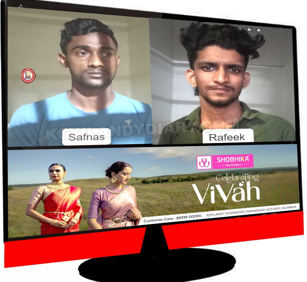 കോഴിക്കോട്: വയോധികയുടെ കണ്ണിൽ മുളകുപൊടി എറിഞ്ഞ് മൊബൈൽ ഫോൺ മോഷ്ടിച്ച് വിൽപന നടത്തിയ കേസ്സിലെ പ്രതികളായ കൂത്തുപറമ്പ് മലബാർ സ്വദേശി സഫ്നസ് (28), കക്കോടി പുറ്റ് മണ്ണിൽ സ്വദേശി റഫീഖ് മൻസിലിൽ റഫീഖ് (22) എന്നിവർ എലത്തൂർ പോലീസിന്റെ പിടിയിലായി. 13.12.2024 തിയ്യതി പുലർച്ചെ പുതിയങ്ങാടി മാക്കഞ്ചേരിപ്പറമ്പ് വീട്ടിൽ ഭാരതി എന്ന വയോധികയുടെ വീടിന്റെ കിടപ്പുമുറിയിലേക്ക് പ്രതികളിൽ ഒരാൾ അതിക്രമിച്ച് കയറിവന്ന് പരാതിക്കാരിയുടെ കണ്ണിൽ മുളകുപൊടി എറിഞ്ഞ് മുറിയുടെ കട്ടിലിന്റെ മുകളിൽ ഉണ്ടായിരുന്ന Samsung കമ്പനിയുടെ മൊബൈൽ ഫോൺ മോഷ്ടിക്കുകയായിരുന്നു.