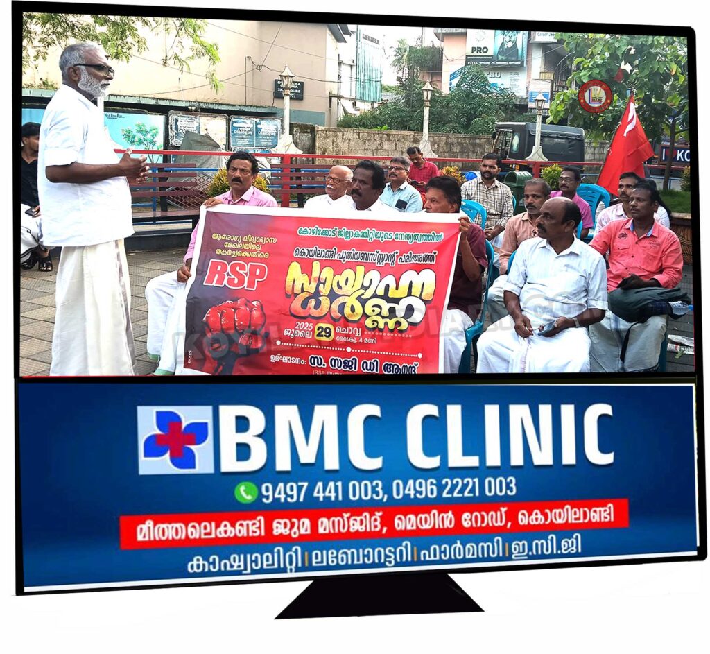 ആർ.എസ്.പി കൊയിലാണ്ടിയിൽ സംഘടിപ്പിച്ച സായാഹ്ന ധർണ്ണ സജി ഡി ആനന്ദ് ഉദ്ഘാടനം ചെയ്തു