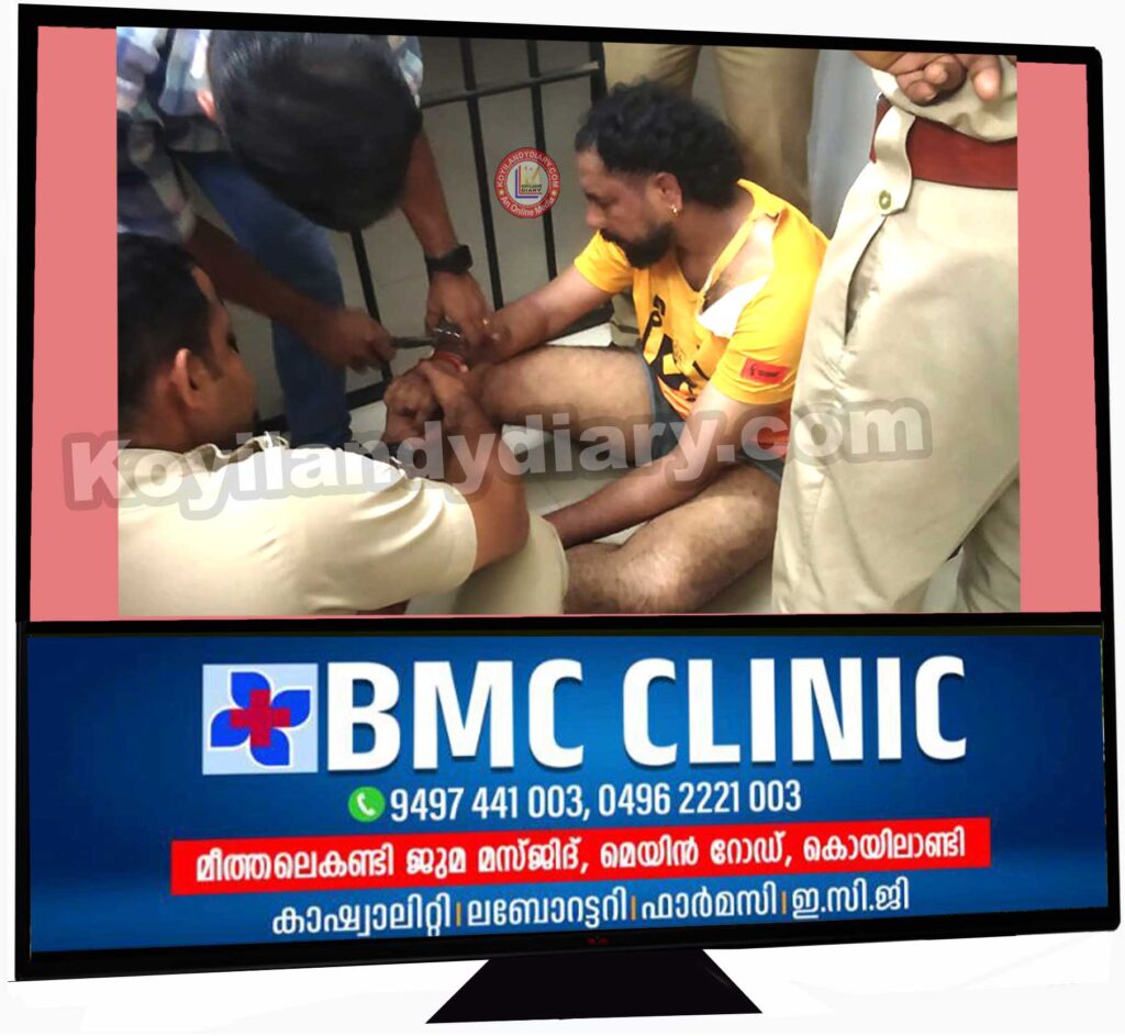 ഇന്ന് ഉച്ചക്ക് 12 മണിയോടുകൂടിയാണ് കൊയിലാണ്ടി പോലീസ് സ്റ്റേഷനിൽ വെച്ച് പ്രതിയുടെ കൈ വിലങ് കയ്യിൽ കുടുങ്ങിയത്. വിവരം കിട്ടിയതിനെ തുടർന്ന് കൊയിലാണ്ടിയിൽ നിന്നും അഗ്നിരക്ഷാ  സേനാംഗങ്ങളായ ഫയർ ആൻഡ് റെസ്ക്യു ഓഫീസർമാരായ ഇർഷാദ് പികെ, സിജിത്ത് സി, നവീൻ എന്നിവർ എത്തി കട്ടർ ഉപയോഗിച്ച് കൈവിലങ്ങ് അഴിച്ചുമാറ്റി.