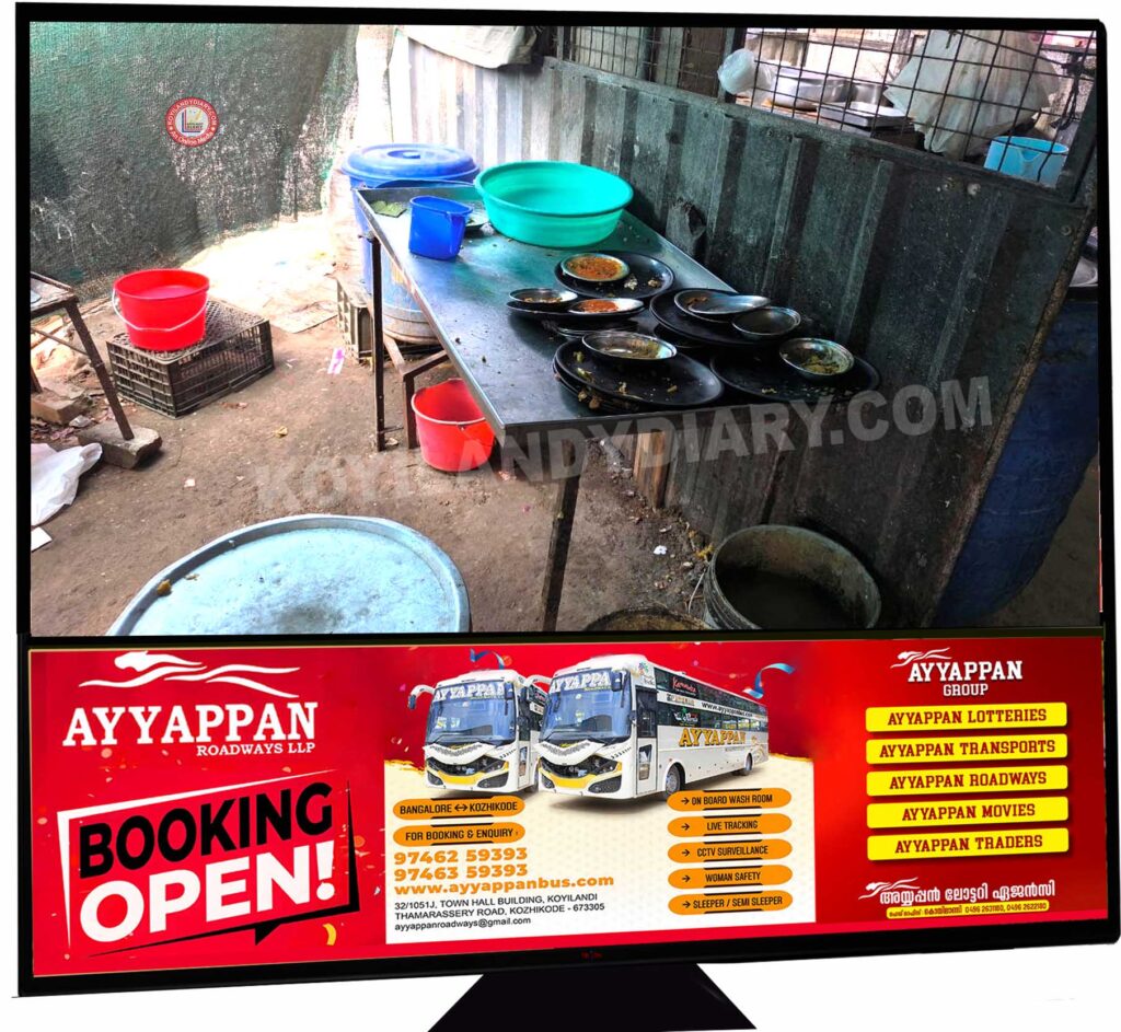 ഭക്ഷണം സൂക്ഷിക്കുന്ന സ്ഥലത്തും അടുക്കളയിലും യാതൊരു സുരക്ഷാ കവചങ്ങളും ഇല്ലാത്തതിനാൽ രാത്രികാലങ്ങളിൽ നായ, പൂച്ച, എലി മറ്റു മൃഗങ്ങളുടെ സാന്നിധ്യം എന്നിവ ഹോട്ടലിൽ ഉണ്ടാകുന്നതായി നാട്ടുകാർ പരാതിപ്പെട്ടിരുന്നു. വിൽപ്പന തീയതി കഴിഞ്ഞ പാലും പാൽ ഉൽപ്പന്നങ്ങളും സ്ഥാപനത്തിൽ നിന്ന് പിടിച്ചെടുക്കുകയുണ്ടായി.