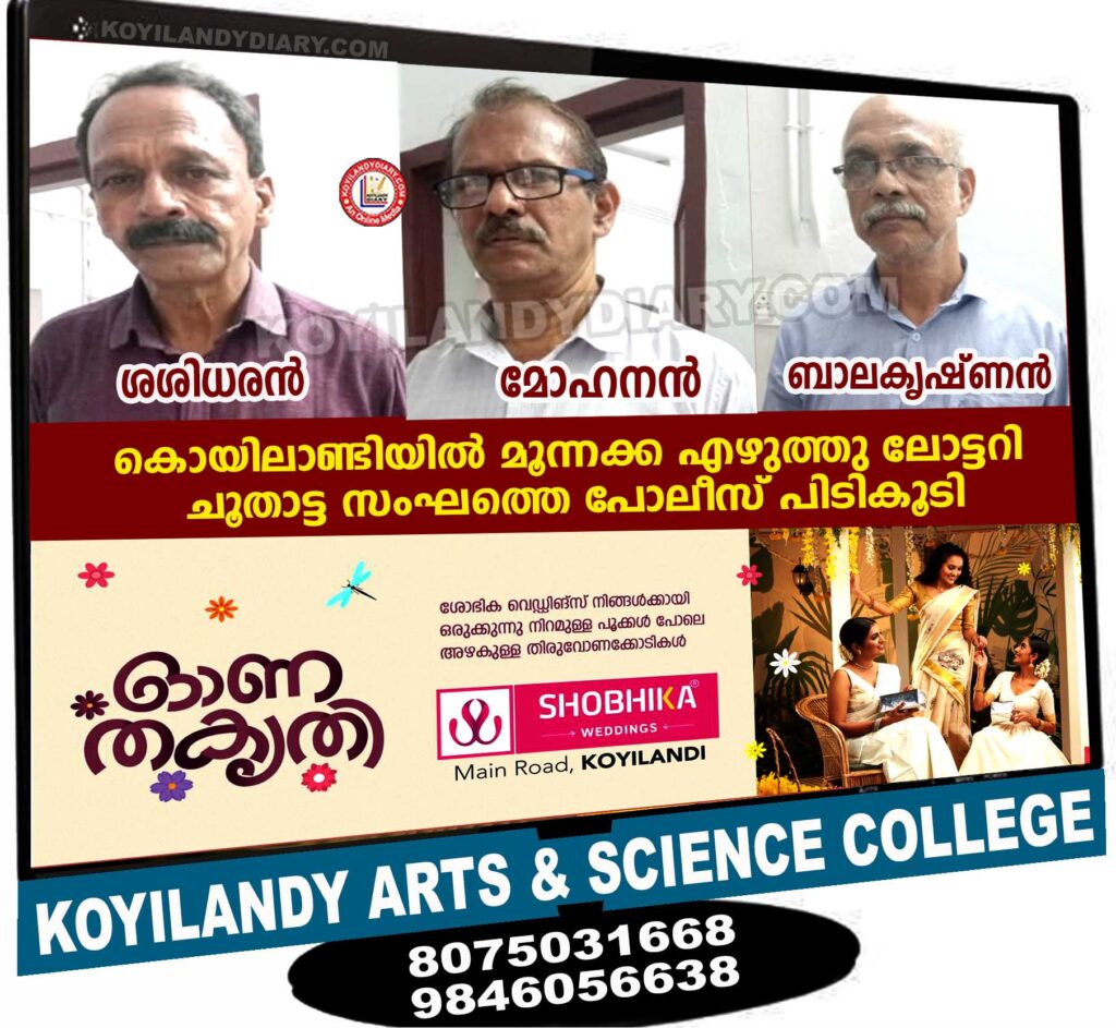 കൊയിലാണ്ടിയിൽ മൂന്നക്ക എഴുത്ത് ലോട്ടറി ചൂതാട്ട സംഘത്തെ പിടികൂടി