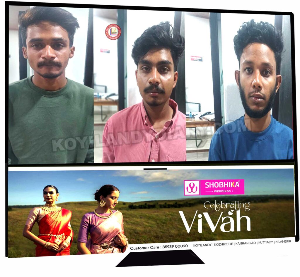 എം ഡി എം എയുമായി മൂന്ന് യുവാക്കൾ അറസ്റ്റിൽ
