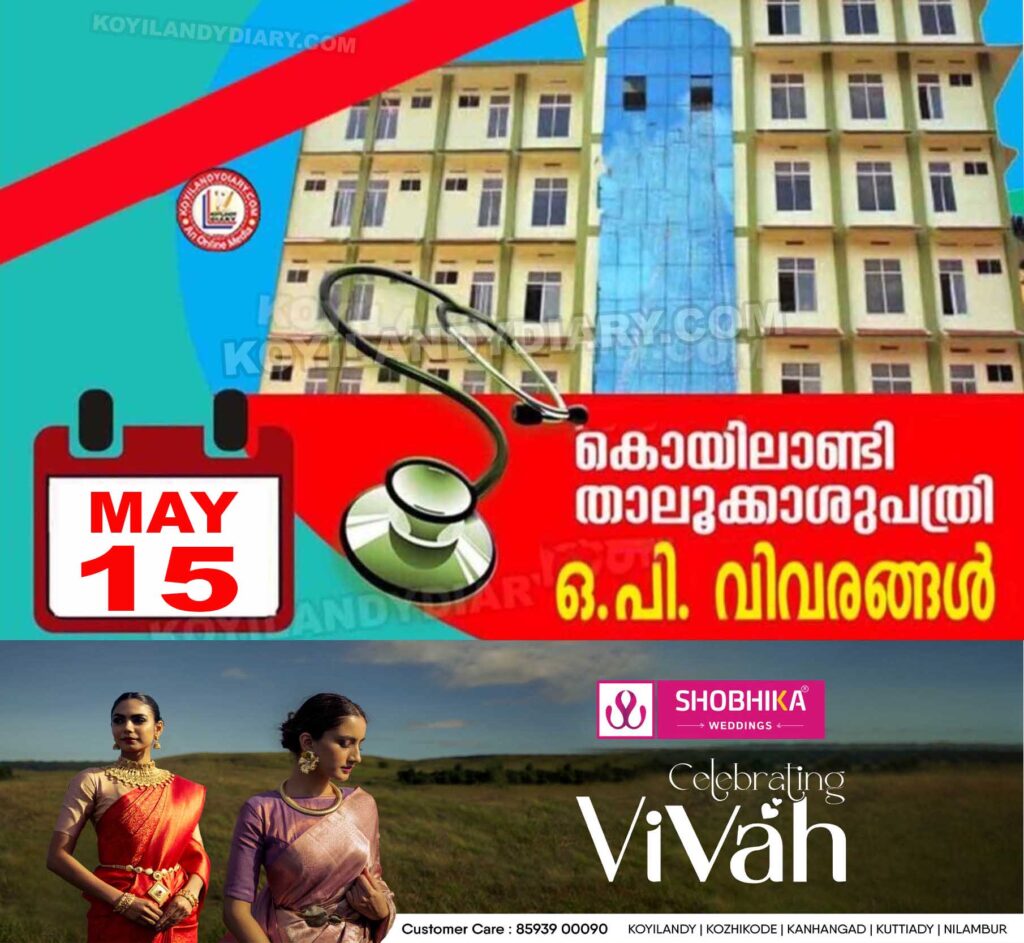കൊയിലാണ്ടി താലൂക്കാശുപത്രിയിൽ മെയ് 15 വ്യാഴാഴ്ചത്തെ ഒ.പിയില് ലഭിക്കുന്ന സേവനങ്ങളെക്കുറിച്ചുള്ള വിവരങ്ങള്..