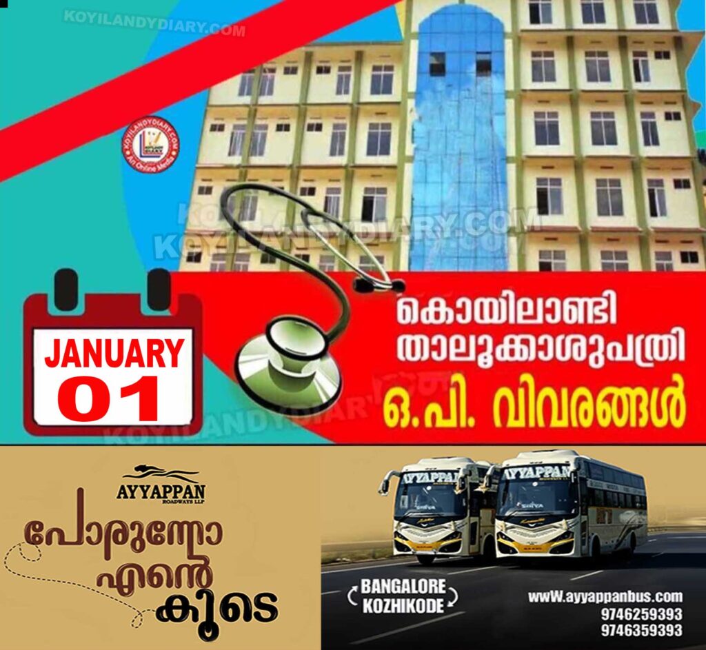 കൊയിലാണ്ടി താലൂക്ക് ആശുപത്രിയിൽ ജനുവരി 01 വ്യാഴാഴ്ചത്തെ ഒ.പി.യിൽ ലഭിക്കുന്ന സേവനങ്ങളെക്കുറിച്ചുള്ള വിവരങ്ങൾ..