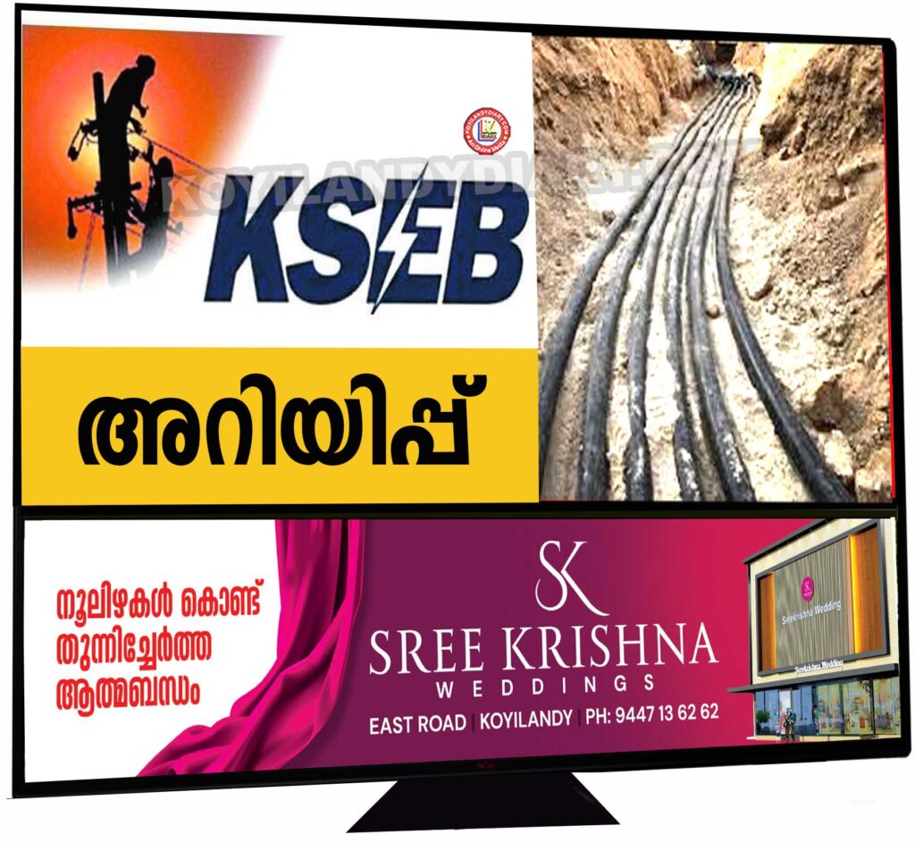 കൊയിലാണ്ടി: കെ.എസ്.ഇ.ബി U G കേബിൾ വർക്കിൻ്റെ ഭാഗമായി പൊയിൽക്കാവ് – മാടാക്കര റൂട്ടിൽ ഉണ്ണരവീട്ടിൽ – കടുവൻകണ്ടി ഭാഗത്ത് വ്യാഴാഴ്ച മുതൽ മൂന്നു ദിവസം രാത്രി 10 മണി മുതൽ രാവിലെ 6 മണി വരെ ഭാഗികമായി ഗതാഗതം തടസ്സപ്പെടുന്നതാണ്. പൊതുജനങ്ങൾ സഹകരിക്കണമെന്ന് അധികൃതർ അറിയിച്ചു.