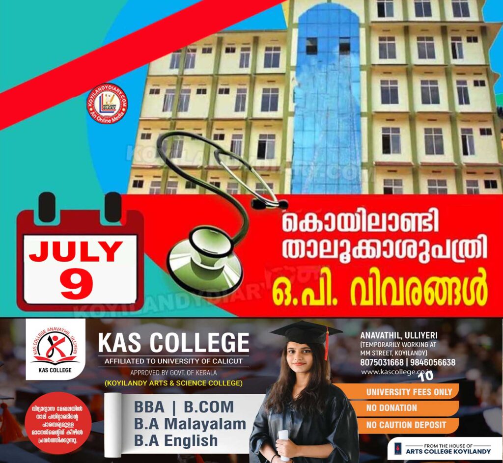 കൊയിലാണ്ടി താലൂക്ക് ആശുപത്രിയിലെ ചൊവ്വാഴ്ചത്തെ ഒ.പി വിവരങ്ങൾ