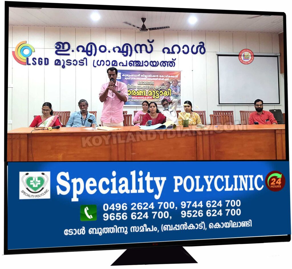കൊയിലാണ്ടി: മൂടാടി ഗ്രാമപഞ്ചായത്ത് ദ്വിദിന ബാലസഭാ സഹവാസ ക്യാമ്പ് സംഘടിപ്പിച്ചു. ഗ്രാമപഞ്ചായത്ത് ഇഎംഎസ് ഹാളിൽ വെച്ച് നടന്ന പരിപാടി പഞ്ചായത്ത് പ്രസിഡണ്ട് സി കെ ശ്രീകുമാർ ഉദ്ഘാടനം ചെയ്തു. സിഡിഎസ് ചെയർപേഴ്സൺ ശ്രീലത പി എം അദ്ധ്യക്ഷത വഹിച്ചു. പഞ്ചായത്ത് ആർ പി വിജില വിജീഷ്, ബ്ലോക്ക് ആർ പി മാരായ ഷിംജിത്ത്, അനിഷ രവി എന്നിവർ വിഷയങ്ങളെക്കുറിച്ച് ക്ലാസെടുത്തു. ബാലസഭ അംഗങ്ങളായ അറുപതോളം കുട്ടികൾ പങ്കെടുത്തു.