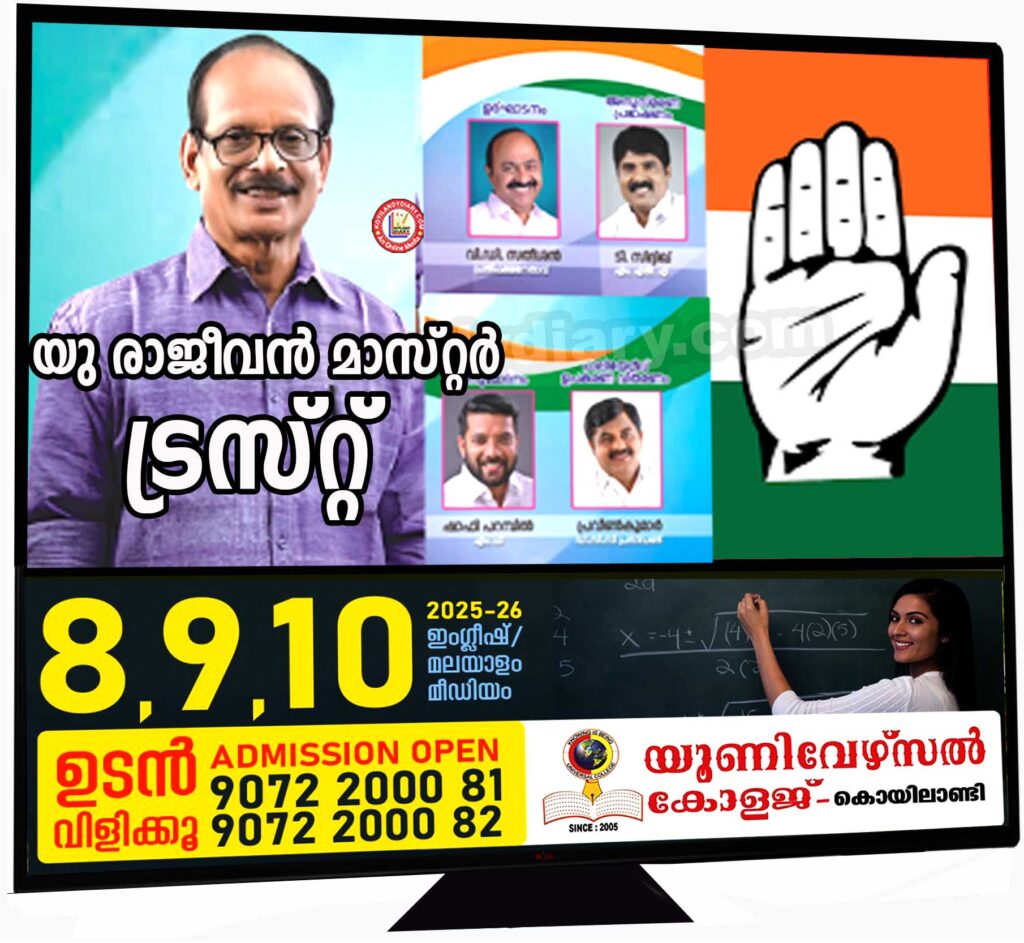 യു. രാജീവൻ മാസ്റ്റർ സ്മാരക ട്രസ്റ്റ് രൂപീകരണം. കൊയിലാണ്ടി കോൺഗ്രസിൽ പൊട്ടിത്തെറി