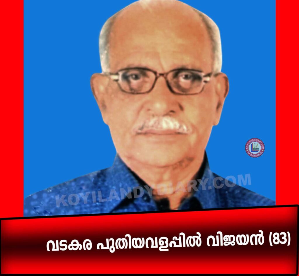 കൊയിലാണ്ടി: വടകര സ്വദേശി പുതിയവളപ്പിൽ വിജയൻ (83) സൂറത്തിൽ നിര്യാതനായി. സൂറത്തിലെ ആദ്യകാല പ്രമുഖ സാമൂഹിക പ്രവർത്തകനായിരുന്നു. സൂറത്ത് അയ്യപ്പക്ഷേത്രം, കലാസമിതി, ശ്രീനാരായണ കൾച്ചറൽ അസോസിയേഷൻ തുടങ്ങിയ സംഘടനകളുടെ സ്ഥാപകാംഗവും അയ്യപ്പസേവാ സമിതി പ്രസിഡണ്ടുമായിരുന്നു.