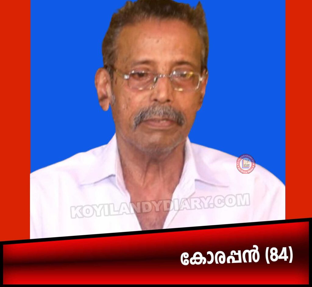 Koyilandy News Obituary വികാസ് നഗര്, ഞേറങ്ങാട്ട് കോരപ്പൻ (84) നിര്യാതനായി 1 hour ago koyilandydiary കാപ്പാട്: വികാസ് നഗര്, ഞേറങ്ങാട്ട് കോരപ്പൻ (84) നിര്യാതനായി. ശവസംസ്ക്കാരം: വെള്ളിയാഴ്ച രാവിലെ 8 മണിക്ക് വീട്ടുവളപ്പിൽ. ഭാര്യ: ചന്ദ്രിക. മക്കൾ: രജി, രതി. മരുമക്കൾ: ഉപേന്ദ്രൻ, നീതു. സഹോദരങ്ങൾ: കുഞ്ഞിപ്പെണ്ണ്, പരേതനായ ചാത്തു. Share news Post navigation Previous ചെങ്ങോട്ടുകാവിൽ ഇതര സംസ്ഥാന തൊഴിലാളി മരിച്ച നിലയില്Next വന്മുകം കോടിയോട്ടു വയൽകുനി വിപിൻ (33) നിര്യാതനായി