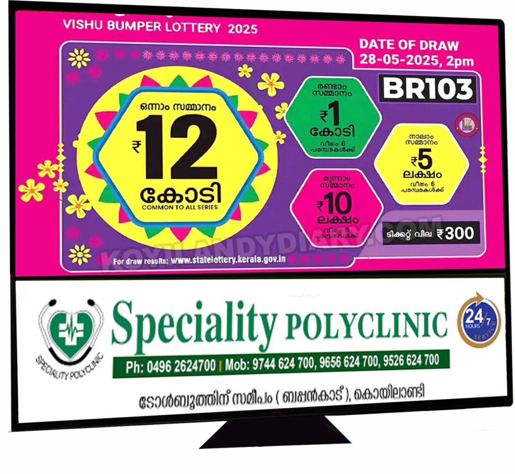 വിഷു ബമ്പർ 12 കോടി രൂപ പാലക്കാട് വിറ്റ ടിക്കറ്റിന്; ഒന്നാം സമ്മാനം VD 204266 എന്ന നമ്പറിന്