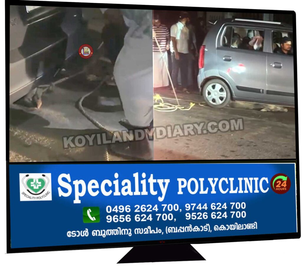 നാദാപുരത്ത് കാട്ടുപന്നി കാറിനടിയിൽ കുടുങ്ങി; പുറത്തിറങ്ങാൻ കഴിയാതെ കുടുംബം