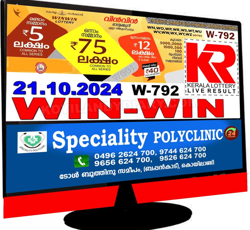 വിൻ വിൻ W 792 ലോട്ടറി നറുക്കെടുപ്പ് ഇന്ന്