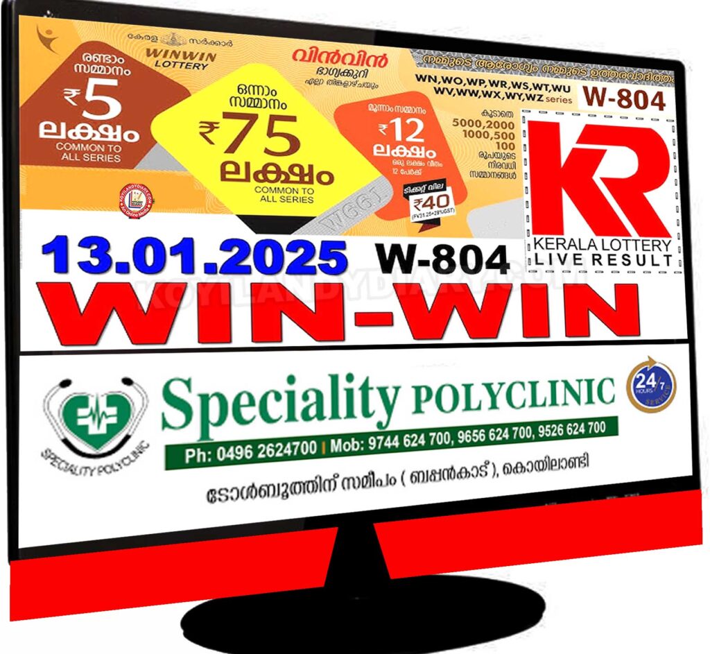വിൻ വിൻ W 804 ലോട്ടറി നറുക്കെടുപ്പ് ഇന്ന്