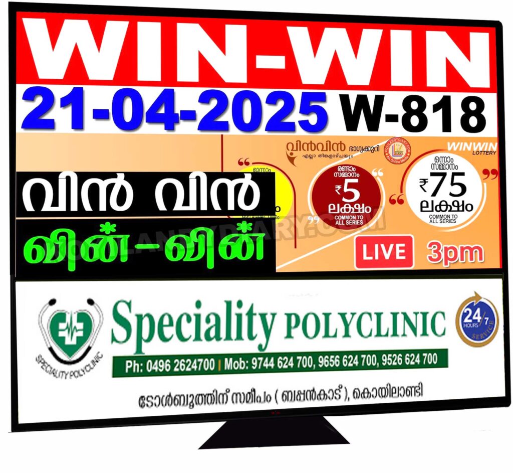 വിന്-വിന് W 818 ലോട്ടറി ഫലം ഇന്ന്