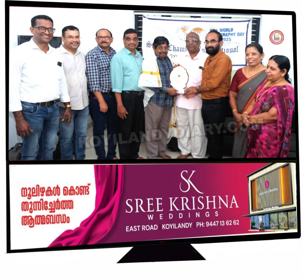 കൊയിലാണ്ടി: സീനിയർ ചേംബർ ഇന്റർനാഷണൽ കൊയിലാണ്ടി ലീജീയൻ ലോക ഫോട്ടോഗ്രാഫി ദിനത്തിൽ കൊയിലാണ്ടി എംപീസ് തലമുറയിലെ സീനിയർ ഫോട്ടോഗ്രാഫർ ശിവശങ്കരനെ (ബേബി എംപീസ്) ആദരിച്ചു. 1880 ൽ ആരംഭിച്ച ഇന്ത്യയിലെ തന്നെ പ്രഥമ സ്റ്റുഡിയോ ശൃംഖലയായ എംപീസിന്റെ ഇന്നത്തെ തലമുറയിൽ പ്രൊഫഷണൽ ഫോട്ടോഗ്രാഫി രംഗത്ത് സജീവമായ മുതിർന്ന അംഗമാണ് ബേബി.